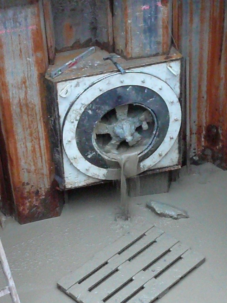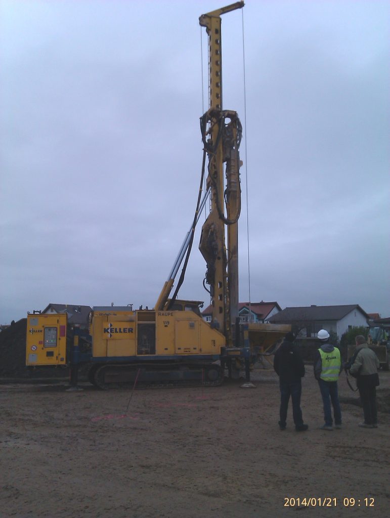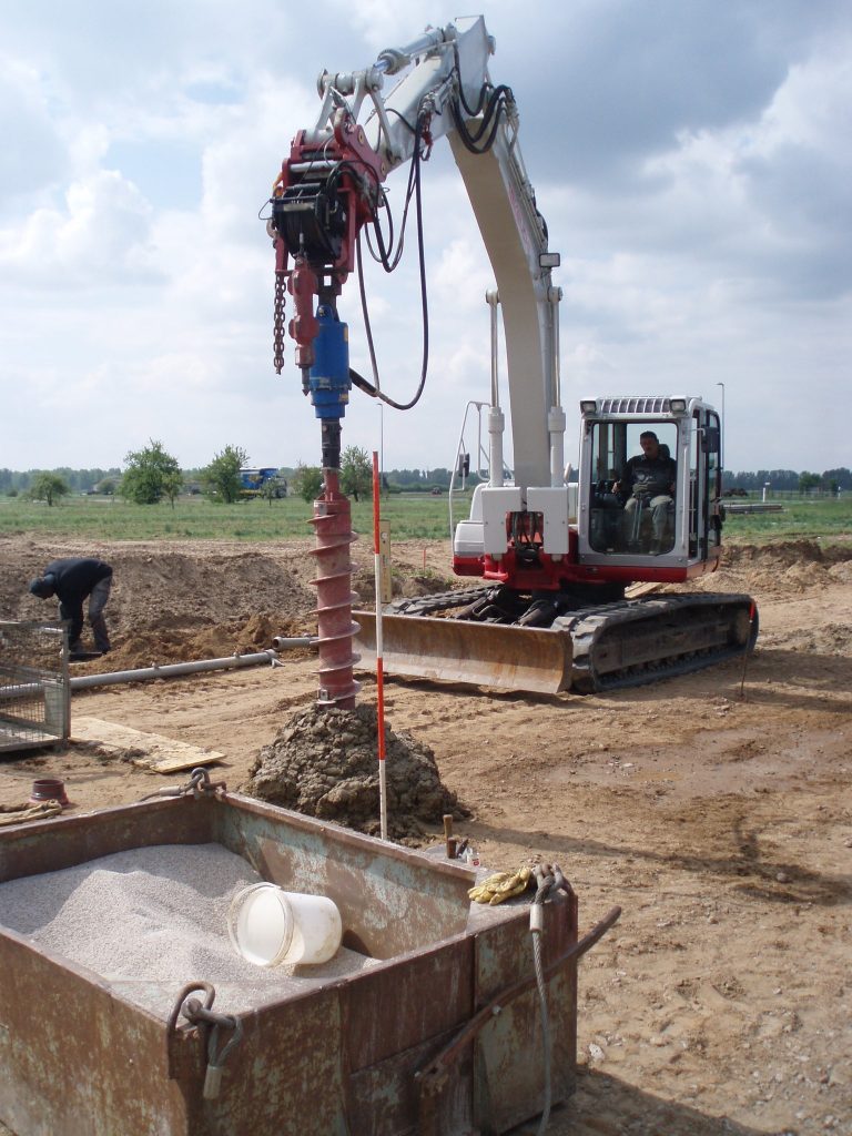 Neubaugebiet "Anglerweg III", Biebesheim: Herstellung einer von über 1000 Rüttelstopfsäulen, Materialzugabe (2014)