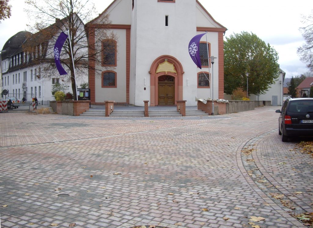 Kirchplatz Pfungstadt, Fertigstellung November 2009 Neugestaltung Kirchenvorplatz, Treppe und Kirchplatz, Rinne aus Naturstein