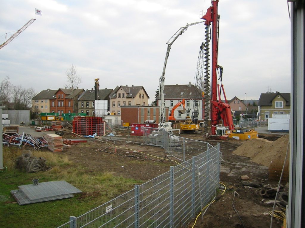 Neubau RÜB 4 in Gernsheim, Herstellung der überschnittenen Bohrpfahlwand