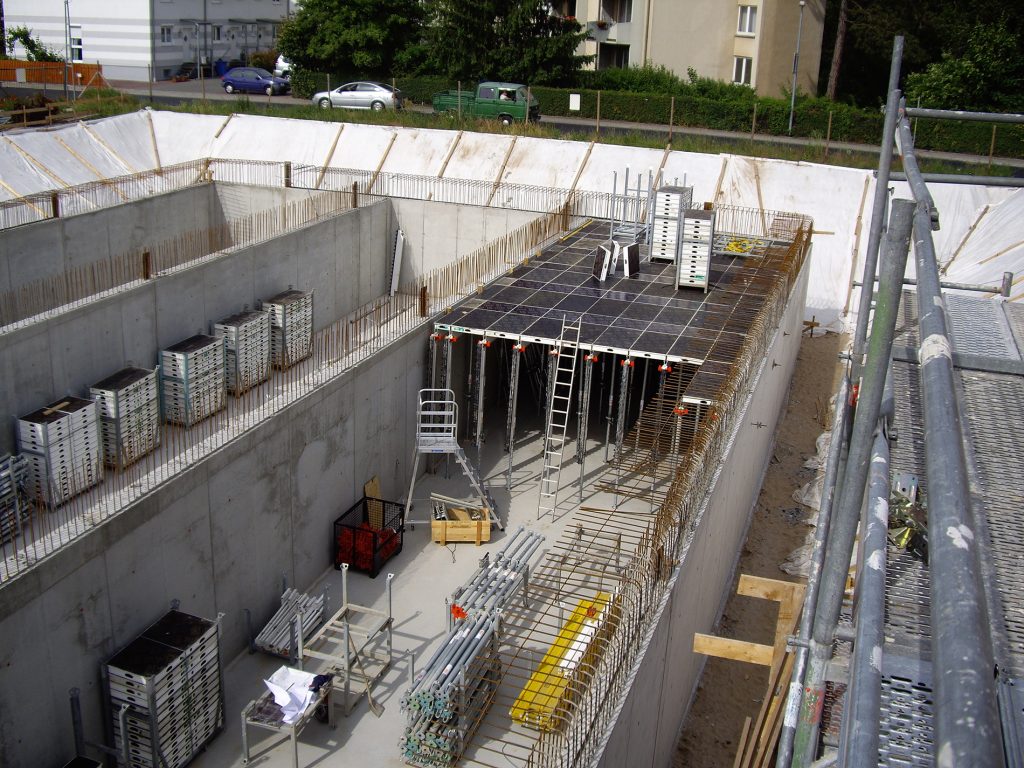 Regenrückhaltebecken 3 im Bau, Blick in 3 von 6 Kammern