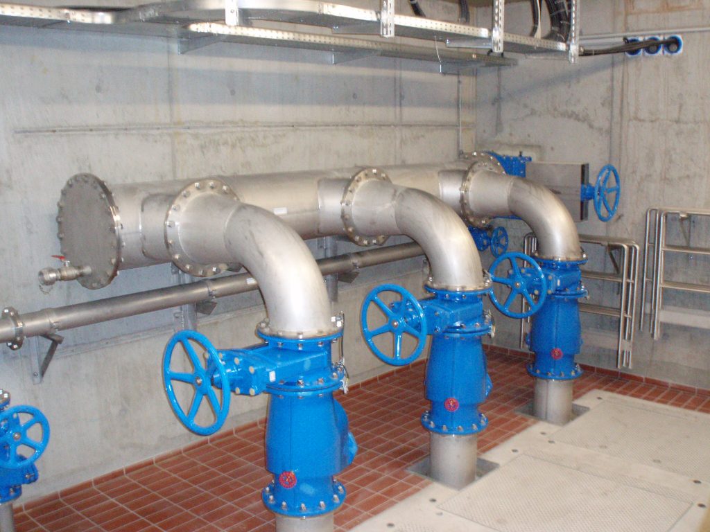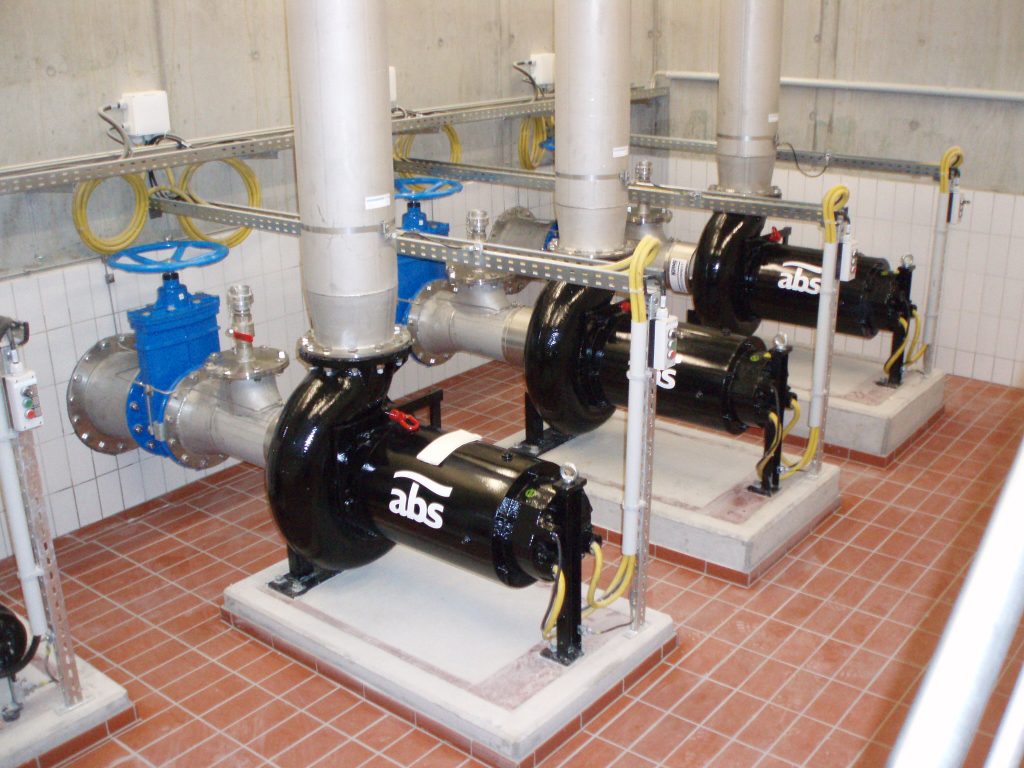Regenrückhaltebecken 3 Stadt Gernsheim, Armaturengruppe Regenwasserpumpen, aufgeräumt und sicher bedienbar