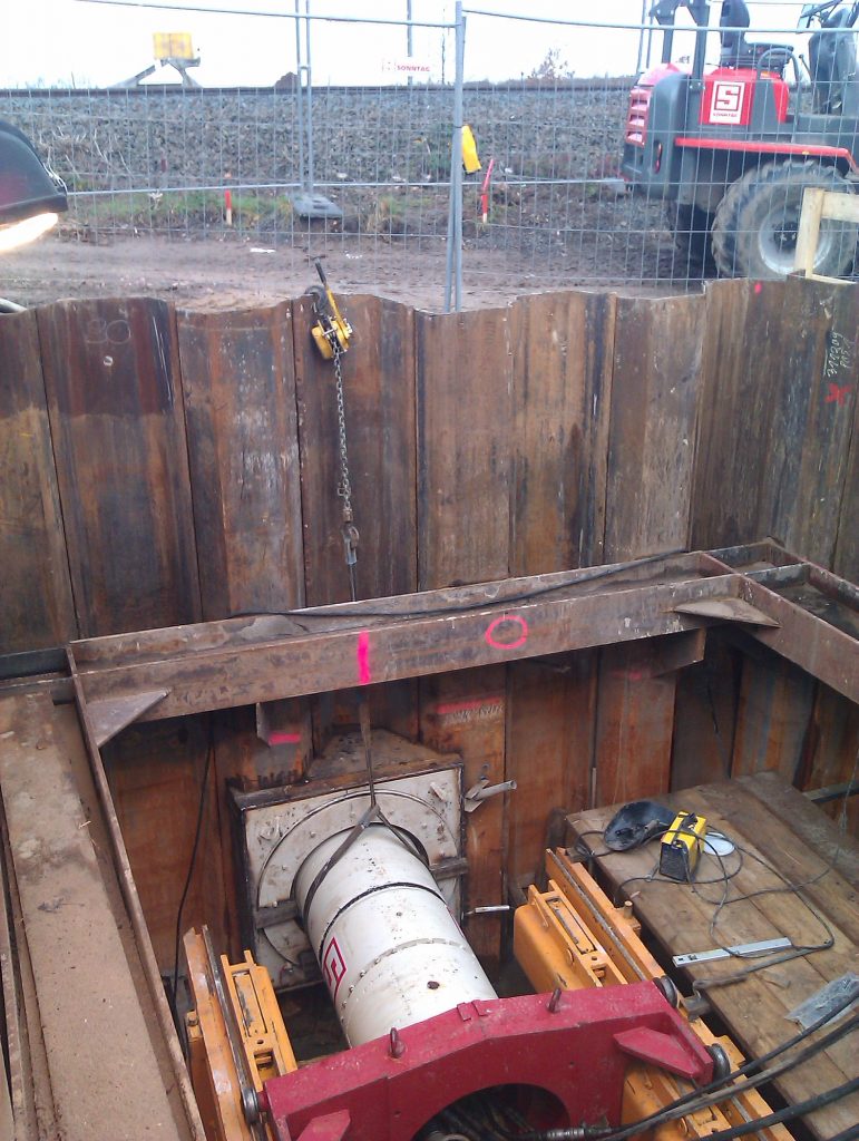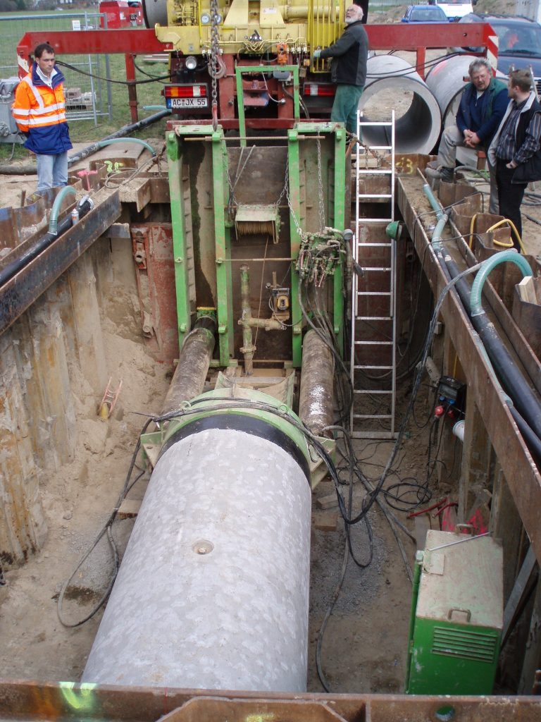 Trinkwasserleitung Berkach-Büttelborn, Durchpressung der DB-Strecke 4010: Ankunft Bohrkopf in Zielgrube (2010)