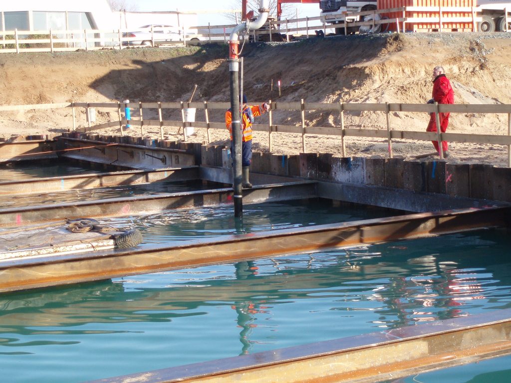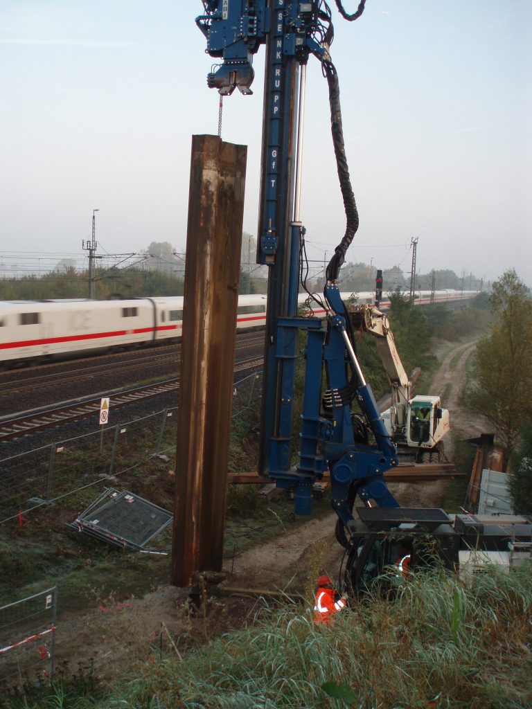 Trinkwasserleitung Berkach-Büttelborn, Durchpressung der DB-Strecke 4010: Einbringen des wasserdichten Verbaus (2010)