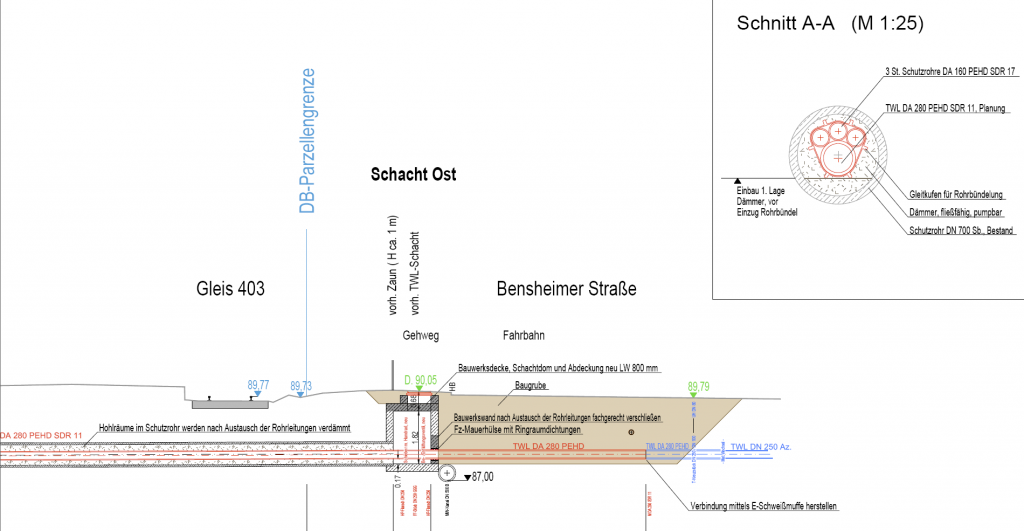 Rohrvortrieb Stahlbetonrohr DN 1000 unter DB-Strecke, mit Grundwasserhaltung Gemeinde Mühltal 2007