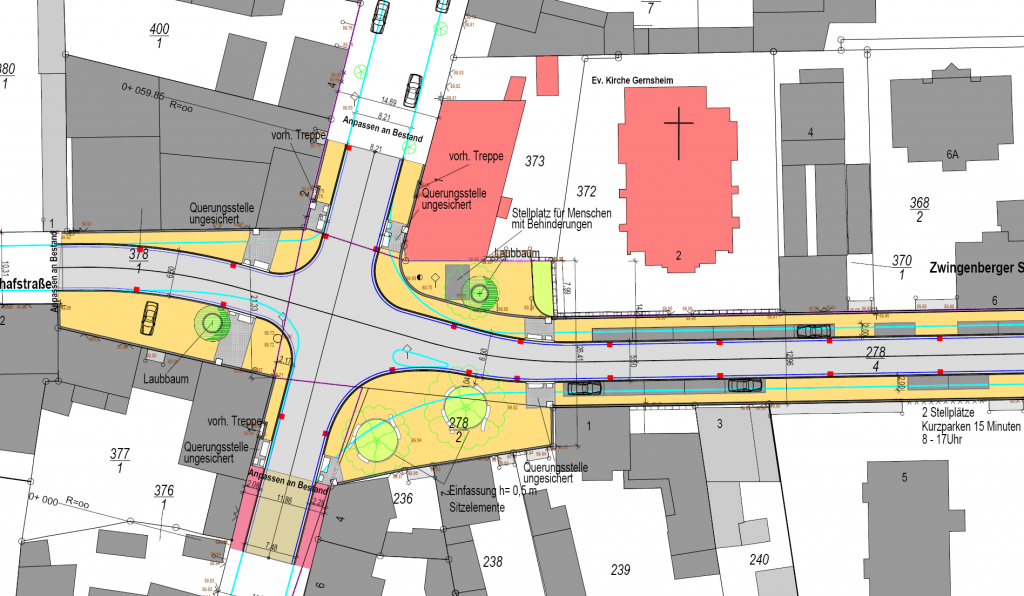 Bushaltestellen Hallenbad behindertengerecht mit Querungshilfe, Stadt Gernsheim 2008